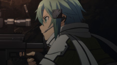 大型狙撃銃《へカートⅡ》を武器とし、《GGO》随一のスナイパーとして活躍する少女シノン。所属するスコードロンの仲間と共に、他のスコードロンを襲撃した彼女は、第1目標の狙撃に見事成功。だが、第2目標として狙ったマント姿の巨漢に、銃弾をかわされてしまう。巨漢はマントの下に隠し持っていた重機関銃を取り出すと、圧倒的な火力で反撃し、シノンらは一転窮地に。仲間たちが弱気になる中、強敵との出会いを求めていたシノンは……。